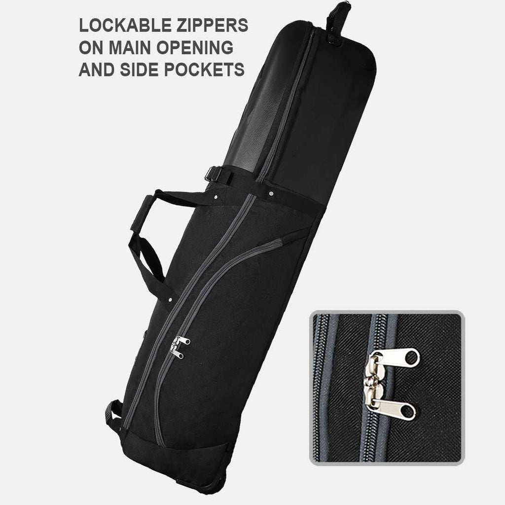 Protect your clubs with the Enforcer Hard Top Golf Travel Bag by CaddyDaddy. Durable, secure, and built for maximum golf travel protection. The Enforcer Golf Travel Bag features a custom ABS molded hard top with soft sided 1800D all-weather fabric body for compact storage. The full wraparound zipper opening makes the Enforcer much easier to add and remove clubs over other hard top bags. The innovative design, oversized lockable zippers and inline skate wheels make the Enforcer an easy-to-handle option when traveling with your expensive clubs.
